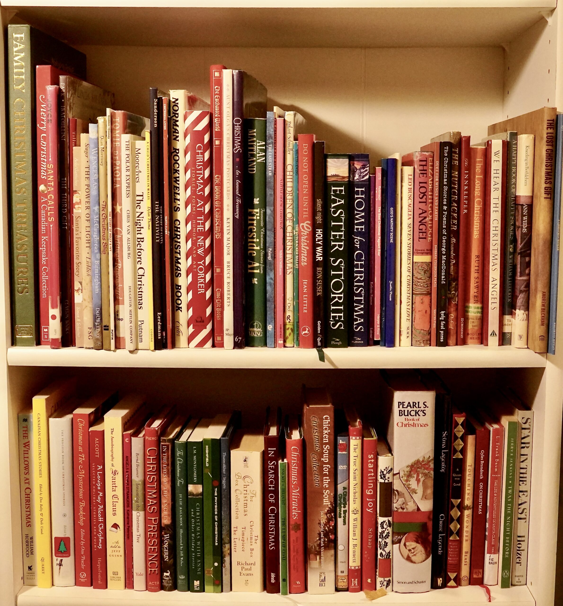 Alas, I shall not write a new story this year. Instead I present you with my “Christmas Shelfie.” An inveterate Christmaholic, I have a large collection of Christmas books from which I’ve chosen a few favorites to display and annotate for you. It’s an eclectic selection, from Charlie Brown to Tolkien to Susan Wojciechowski (who?).